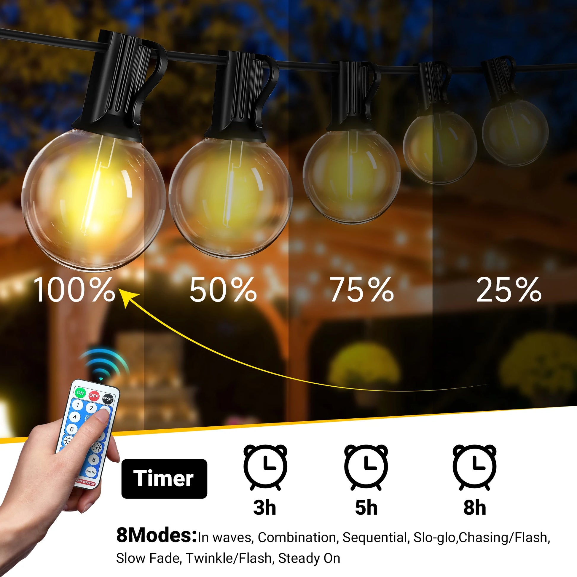 Widely Used: Straight outdoor decorative lights are great for outdoor patios, backyards, rooftops, Halloween, Christmas weddings, birthdays, balcony sheds, gardens, bistros, pergolas, pavilions, tents, BBQs, city rooftops, cafes, umbrellas, parties Decoration etc.