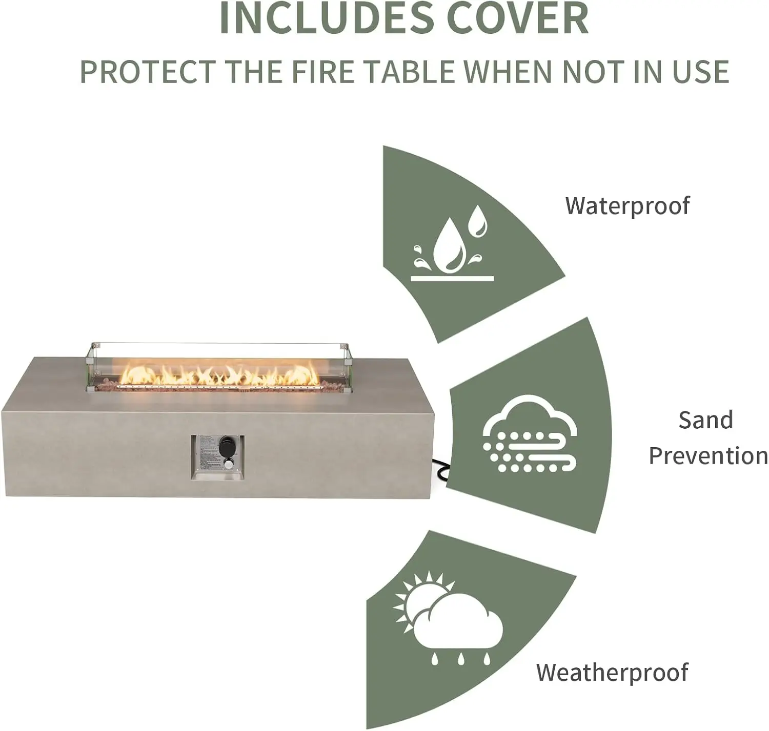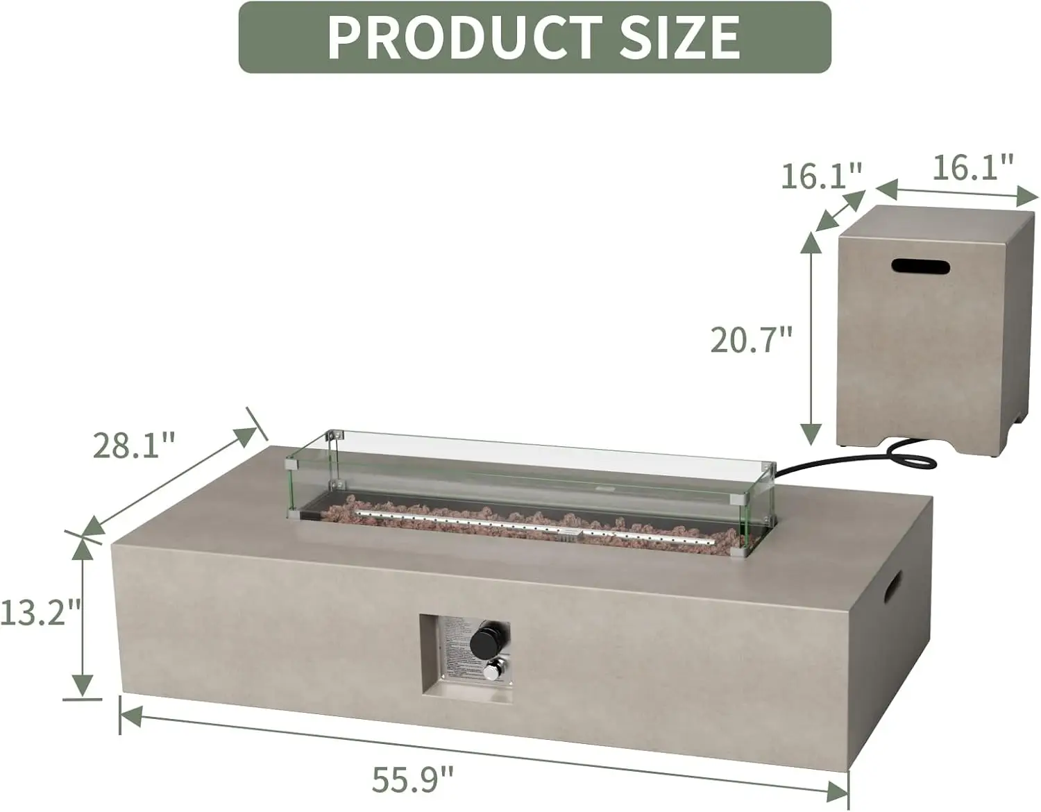 2-Piece Outdoor Propane Fire Table Set Rectangle Concrete 56-inch x 28-inch Gray Fire Pit (50000 BTU) w 20lb Tank Table