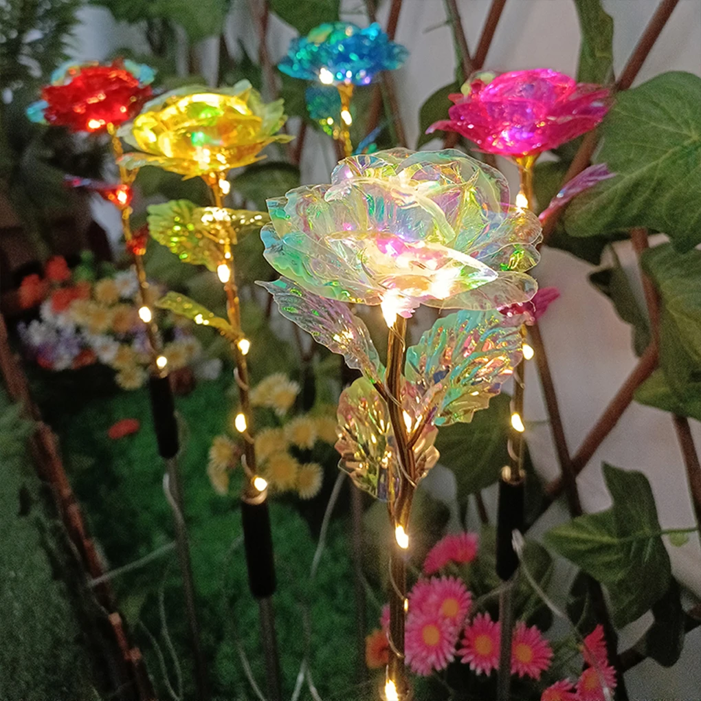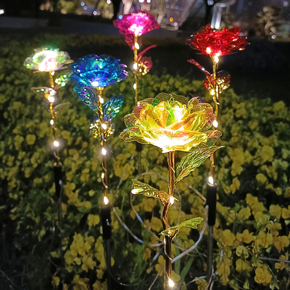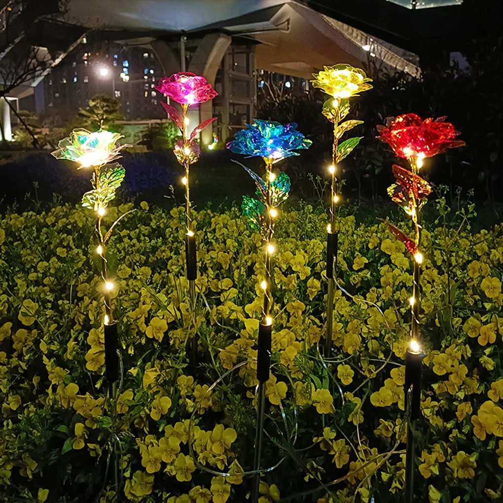 Garden Decoration: Add a touch of elegance to your courtyard with these Solar Rose Lights, featuring a polished stainless steel pole and securely installed ABS ground socket. The choice for garden decoration