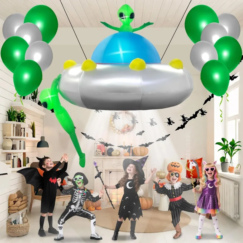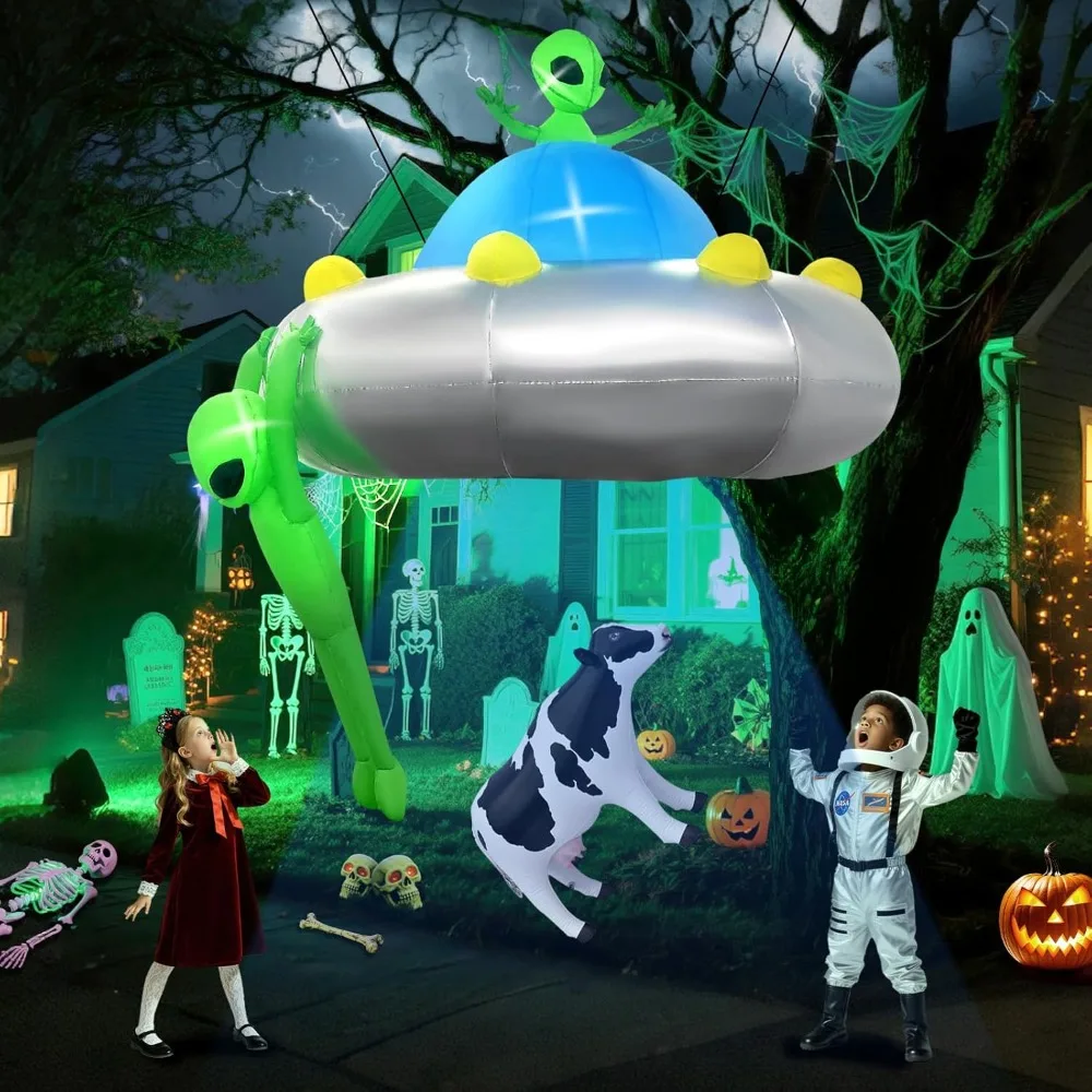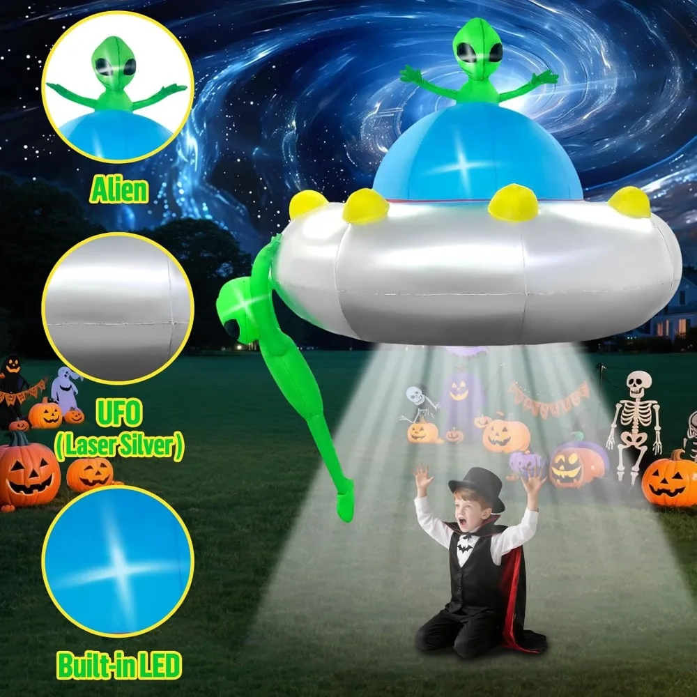 - 【Upgraded Waterproof Air Blower】Our blow up UFO Halloween decoration is equipped with an improved waterproof and powerful built-in air blower, ensuring long-lasting and stable performance even in rainy weather. Simply zip it up and plug in the power supply, and it will be inflated in a few minutes. With CE and UL safety certifications, you can have peace of mind that your decorations are safe to use.