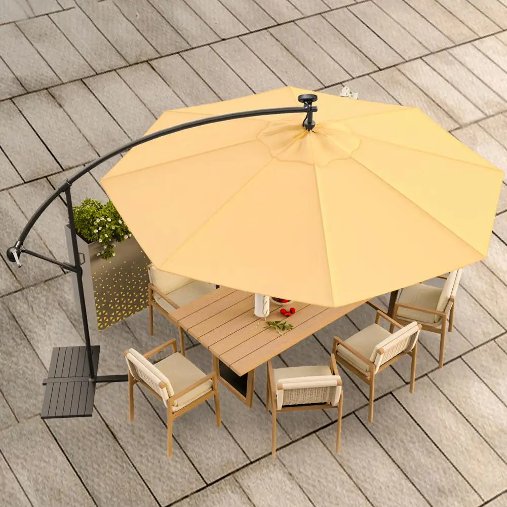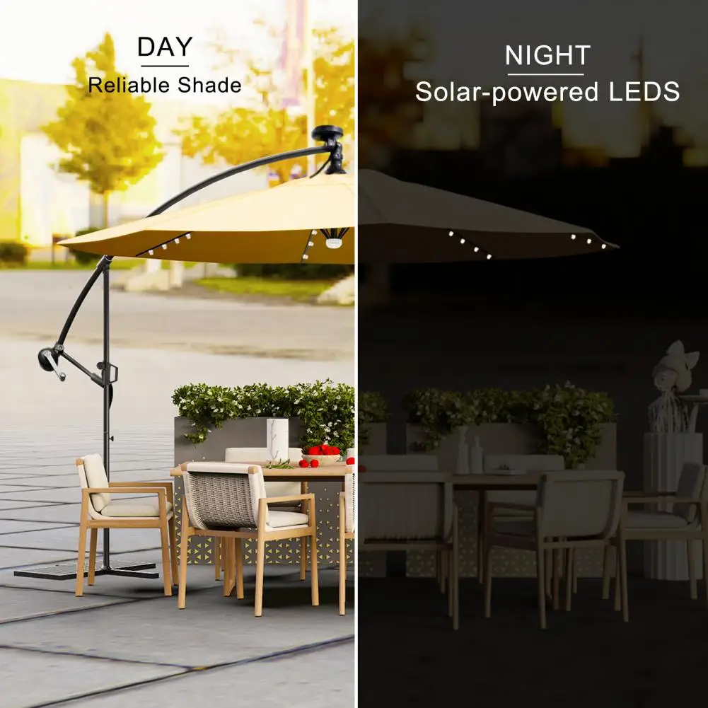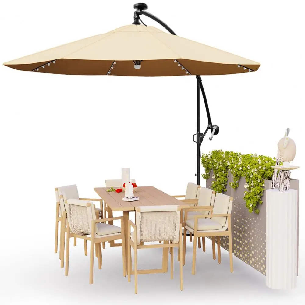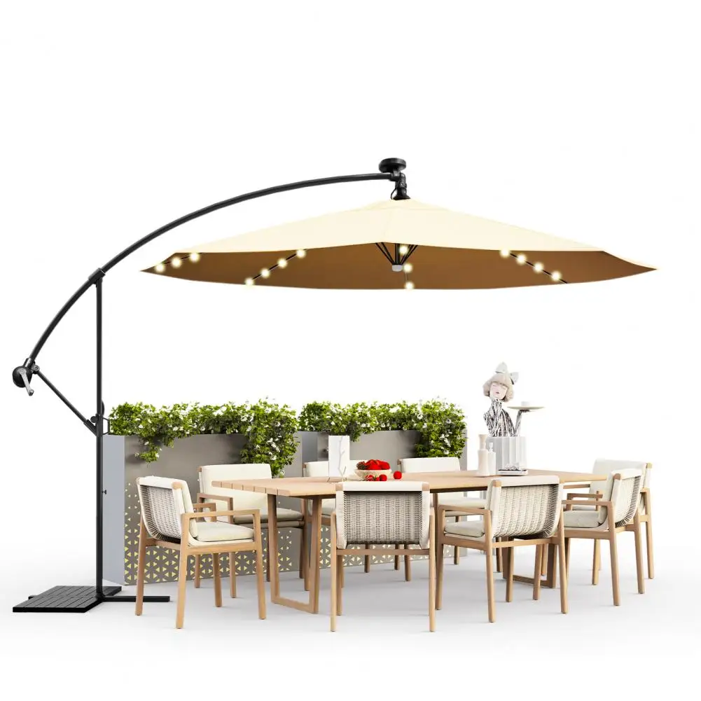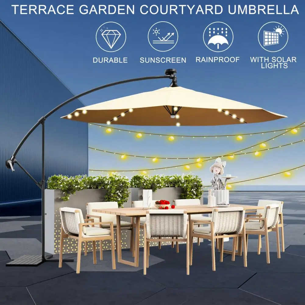 8.9x8.9ft 2-Tier Square Cantilever Patio Outdoor Umbrella with Solar LED Outdoor Sun Shade Hand-cranked Umbrella for Backyard