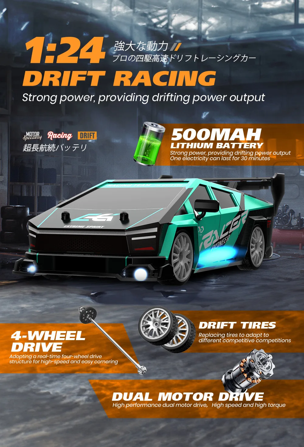 3. Remote control distance: 30 meters, charging time: 100 minutes,