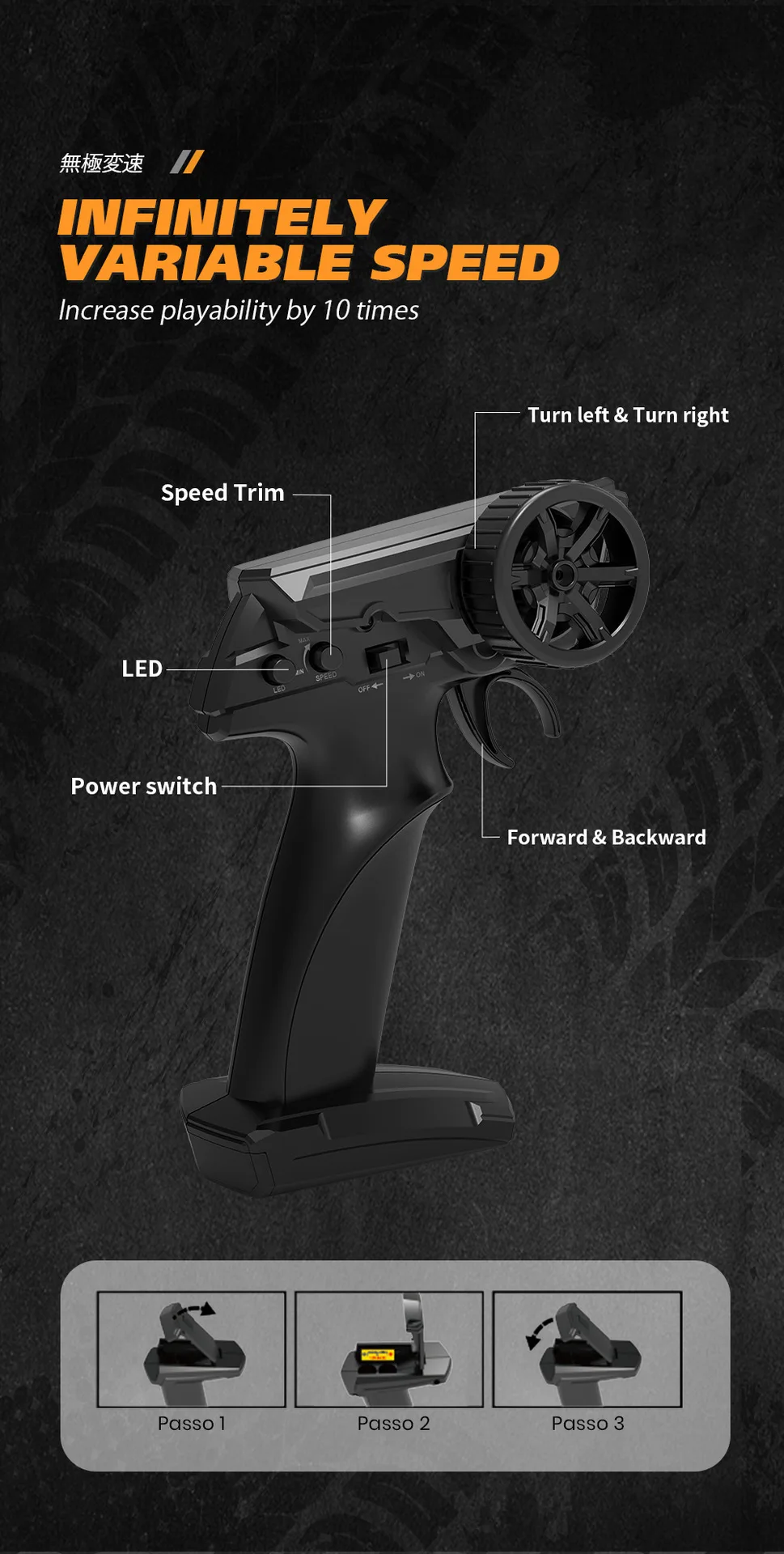 Function: forward, backward, turn left, turn right, anti-jamming protection, low voltage protection, adjustable light, controllable speed