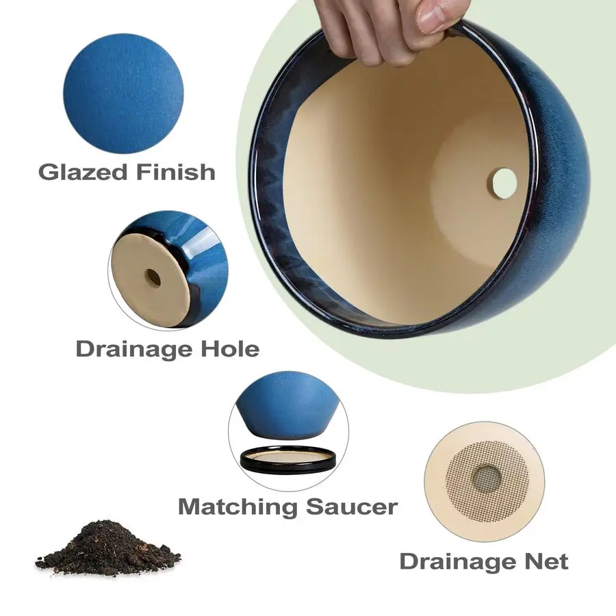 Plant Pots with Drainage Holes and Saucers The drainage holes can effectively remove excess water from the ceramic planter to avoid root rot while the ceramic plant saucer can catch excess water seeping out from the bottom of the ceramic flower pot to keep the home environment tidy