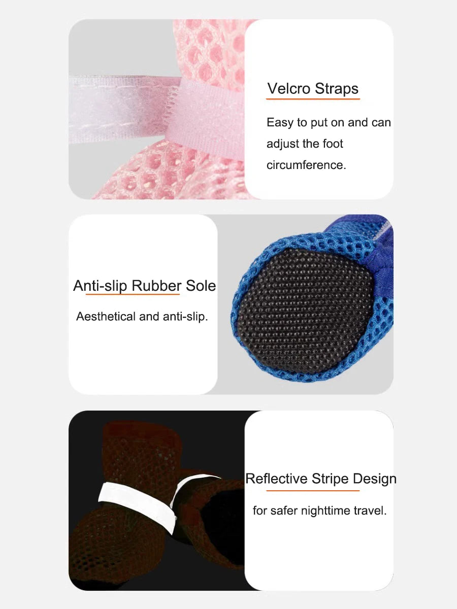 Comfortable & Breathable Design: The breathable air-mesh dog boots keep paws cool and dry with maximum airflow. Lightweight and flexible, they move naturally with your dog’s paws.