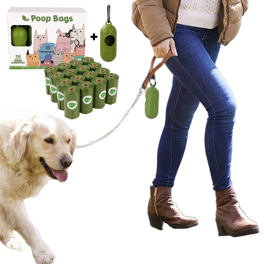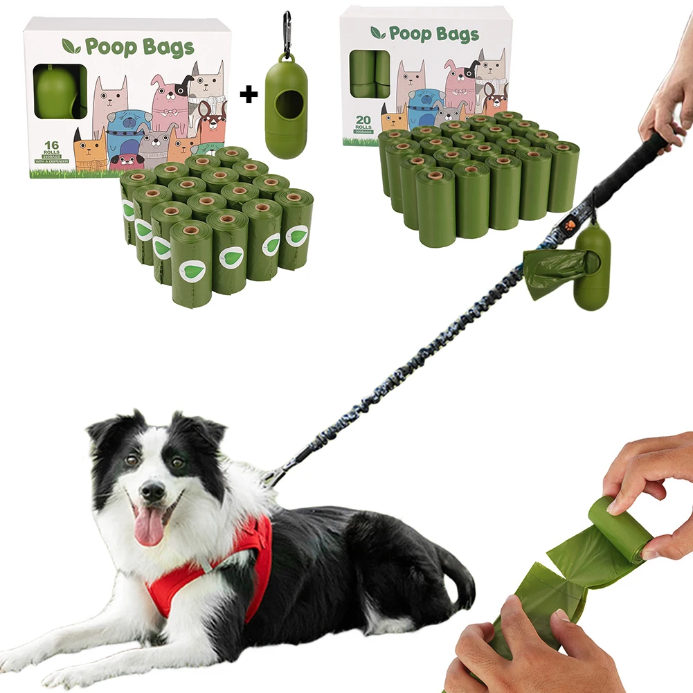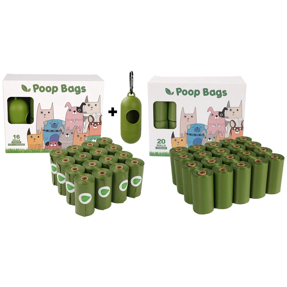 Biodegradable Dog Poop Bags Leak-Proof Dog Poop Bags Rolls with Dispenser Dog Bags for Poop Extra Thick for Pet Outdoor Supplies
