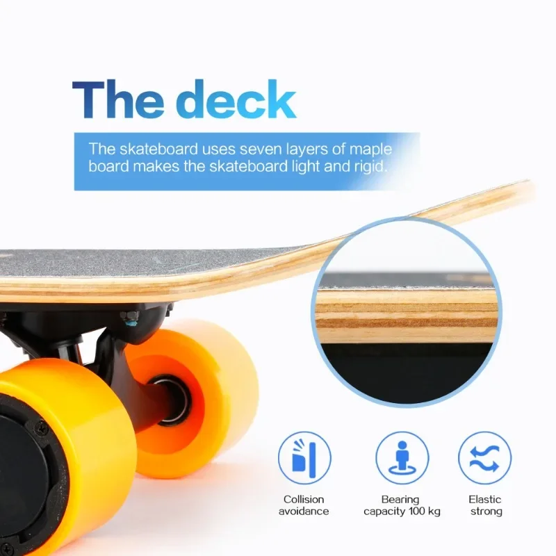 Electric Skateboard with Remote Control, 350W, Max 10 MPH, 7 Layers Maple Skateboard, Load Up To 100kg for Adult, Teens and Kids