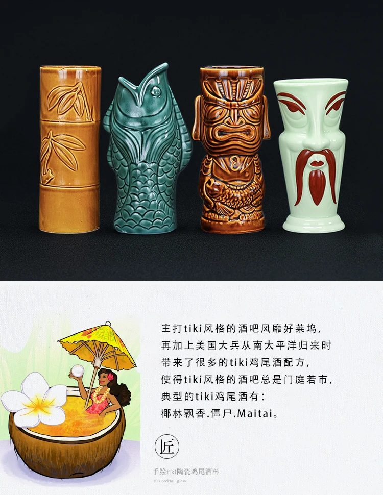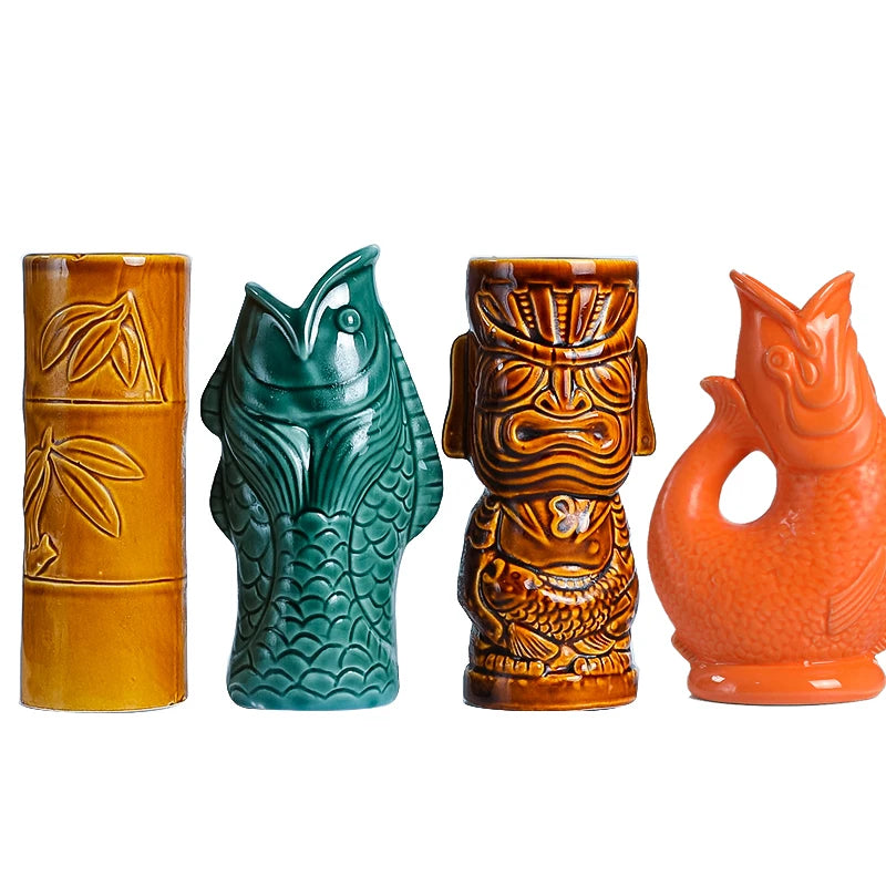Hawaii Tiki Mugs Cocktail Fish Cup Beer Beverage Mug Wine Mug Ceramic Easter Islander Tiki Mug Bar Tool