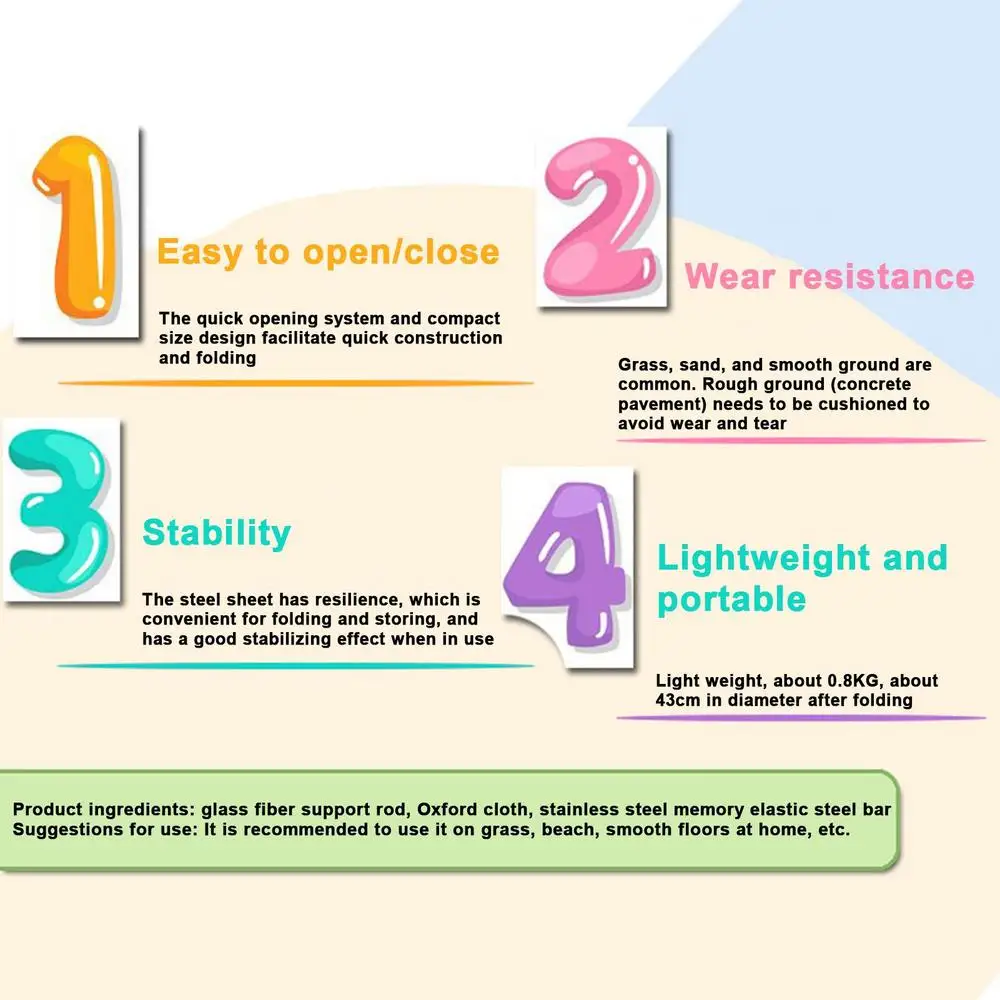 Product material: Oxford cloth, folding steel, fiberglass support