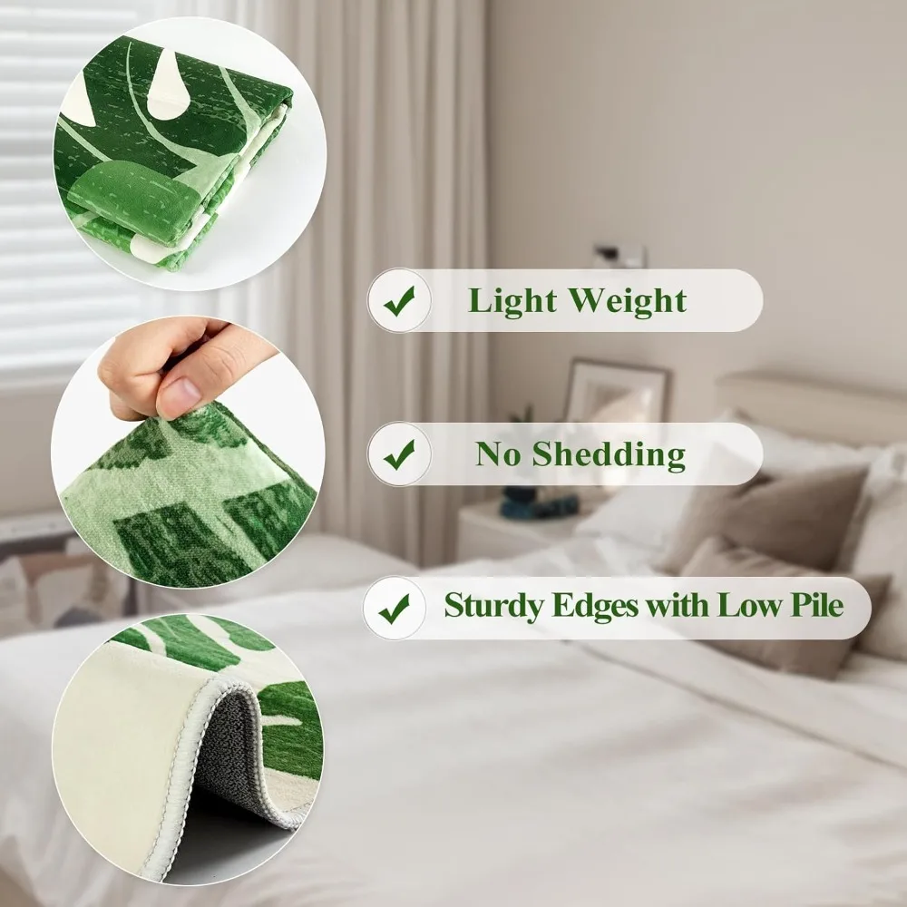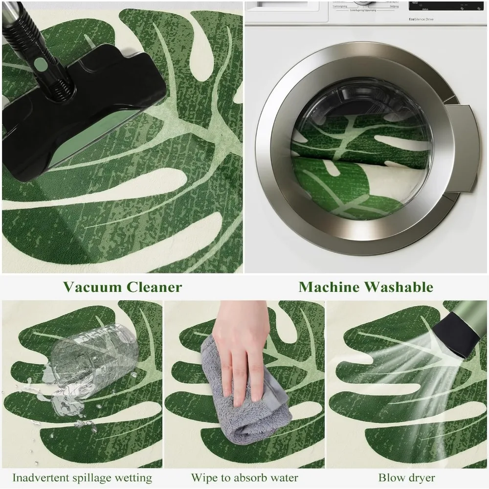 Leaf Indoor Outdoor Area Rugs for Living Room, 8x10 Green Washable Rug Tropical Monstera Plant Non-Slip Bedroom Rugs, Large Acc