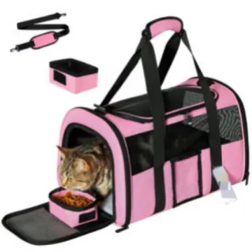 New in Foldable Pet Bag Travel Handbag One Shoulder Portable Small Medium-sized 3 Side Windows Solid Nylon Cloth Cat Pet Bags