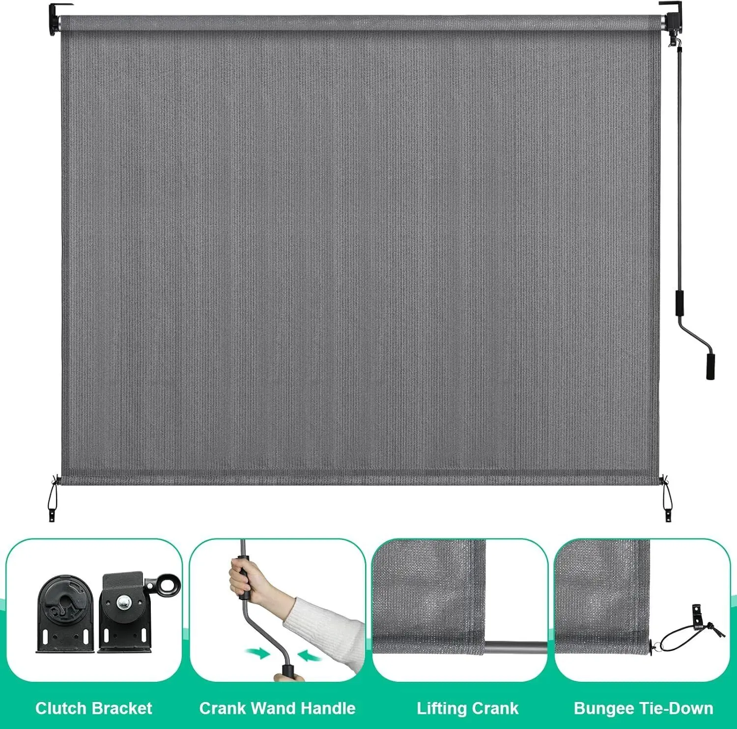 Effortless and Safe Operation:Equipped with a manual crank system, this patio roller shade allows for seamless and easy adjustments. The cordless design enhances safety for families with children and pets, providing peace of mind without compromising on functionality.