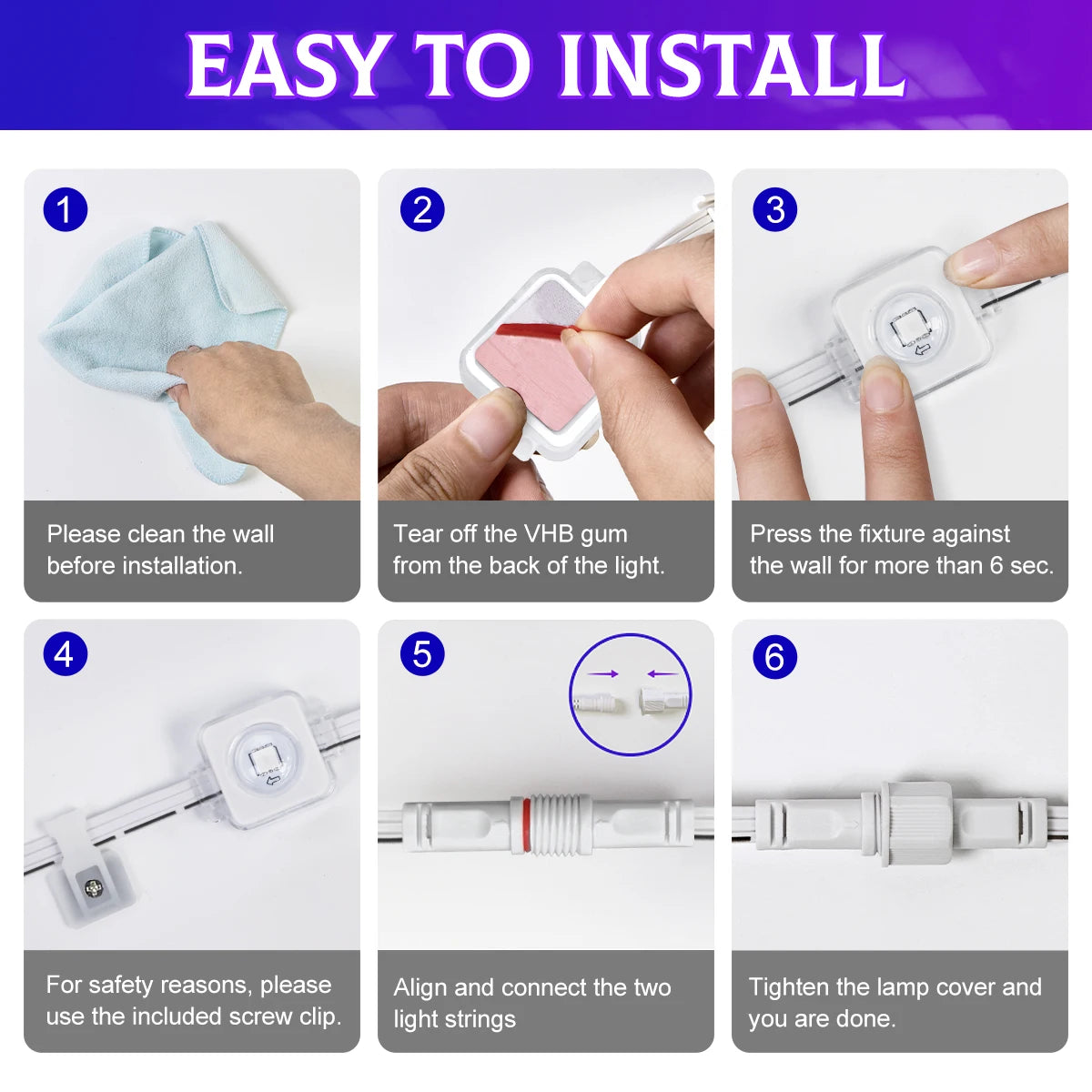 You can customize your holiday lighting with a variety of colors, and patterns to create a unique and captivating display. The lens design reveals a unique wall-washing lighting effect. The brightness of each light is 26 lumens. Our smart app enable you to customize your outdoor lights for every holiday, Christams, and special occasion.