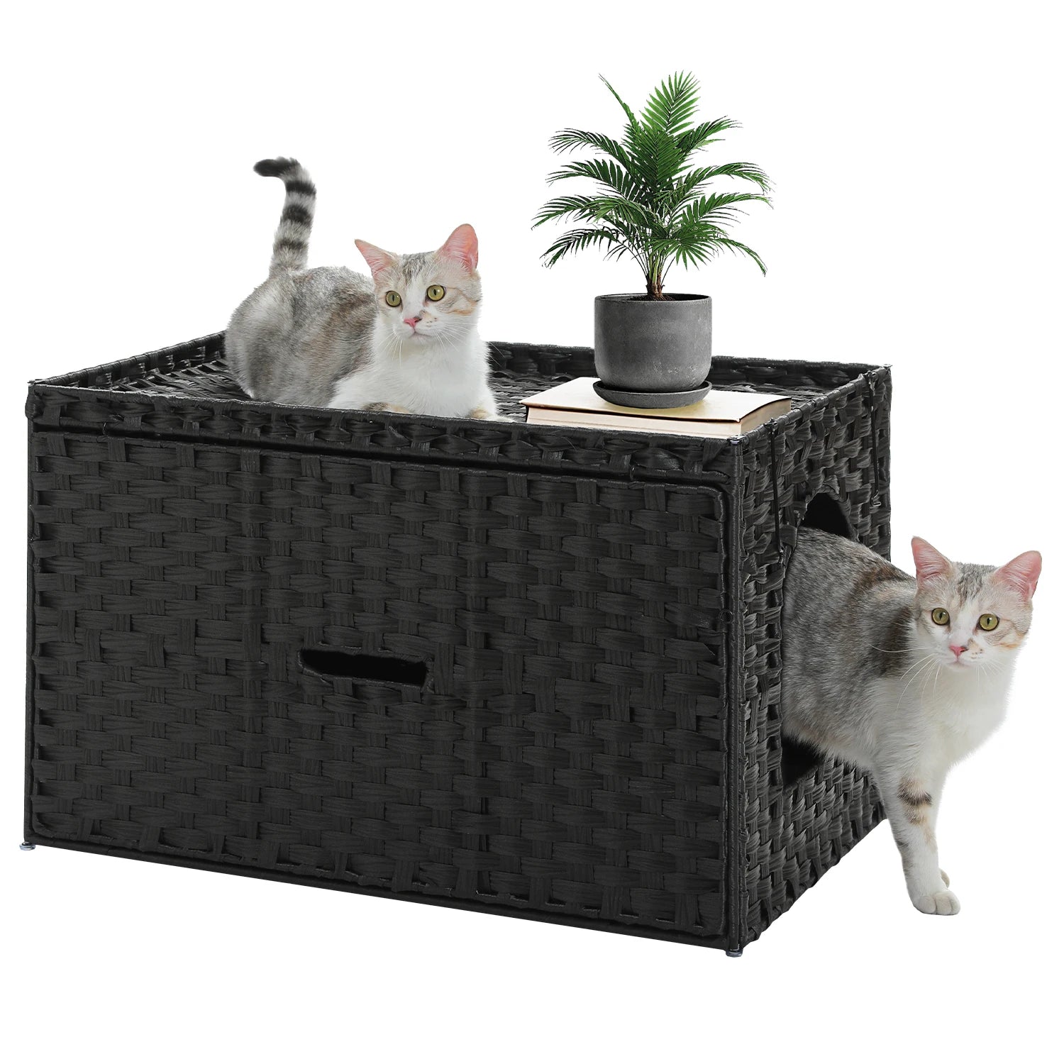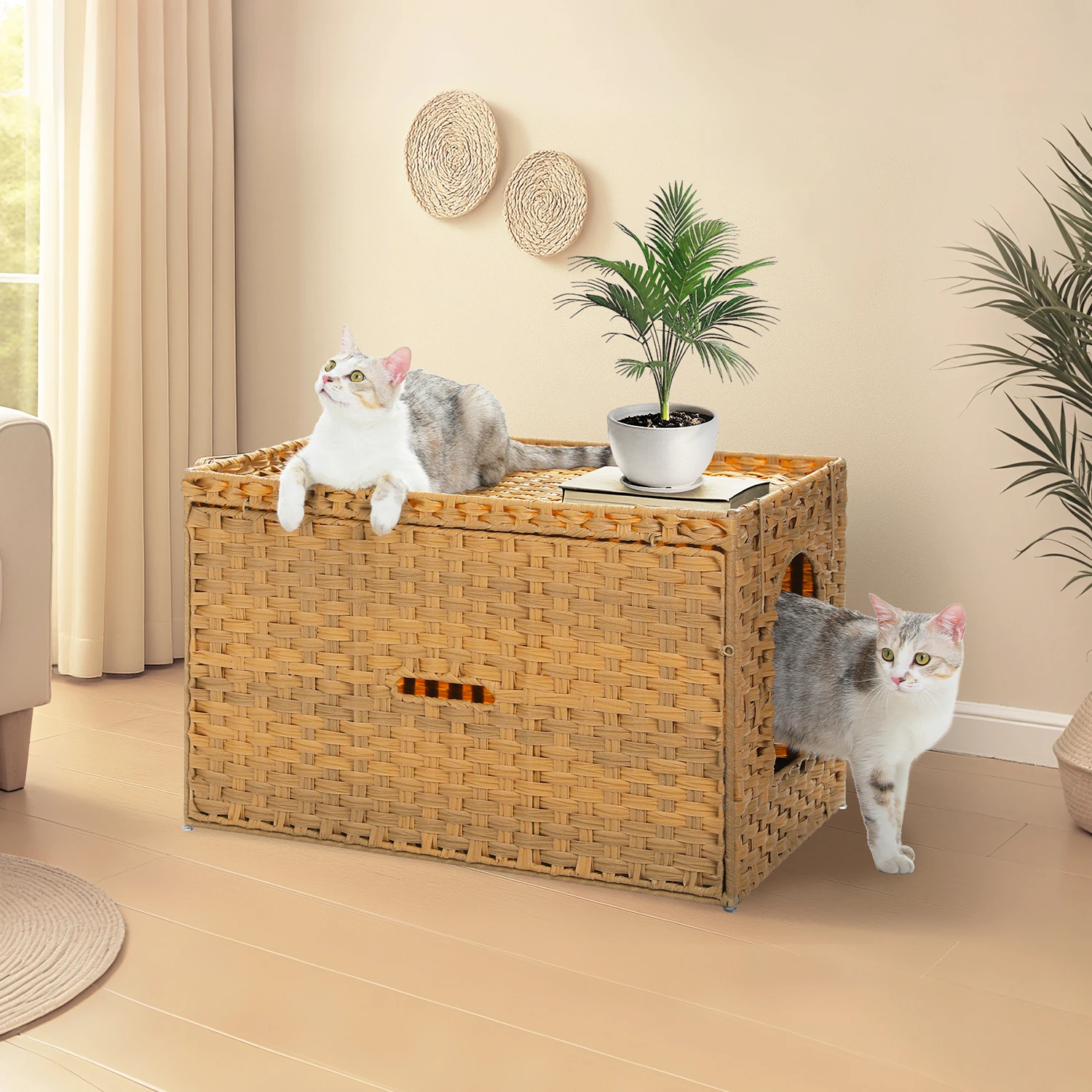 5.Fast Build, Multi-Use Furniture: Effortless 5-Minute Assembly with Multifunctional Design Assemble your rattan cat litter box enclosure in just five minutes with the included step-by-step manual. Transform this litter box enclosure furniture into a cat bed, feeding station (the top supports 44 pounds), or side table! Neutral rattan finish complements boho, farmhouse, or contemporary decor.