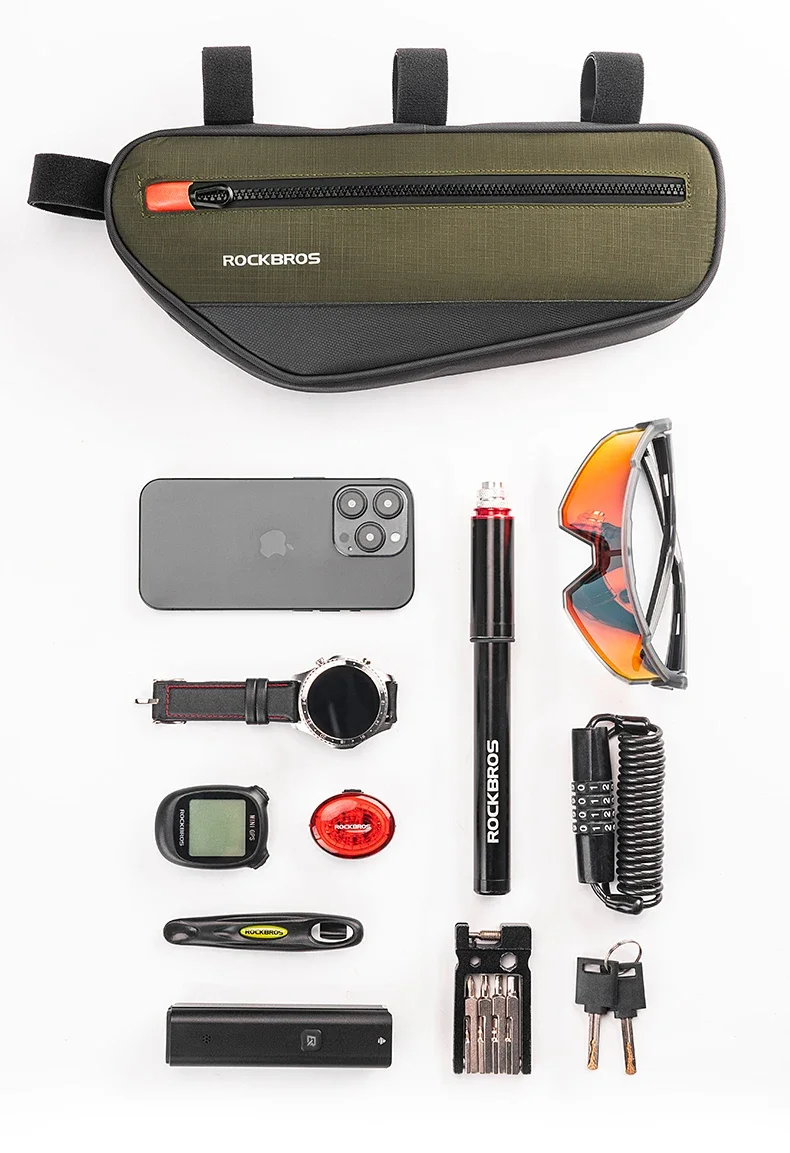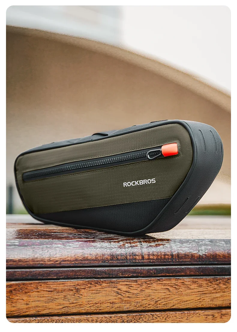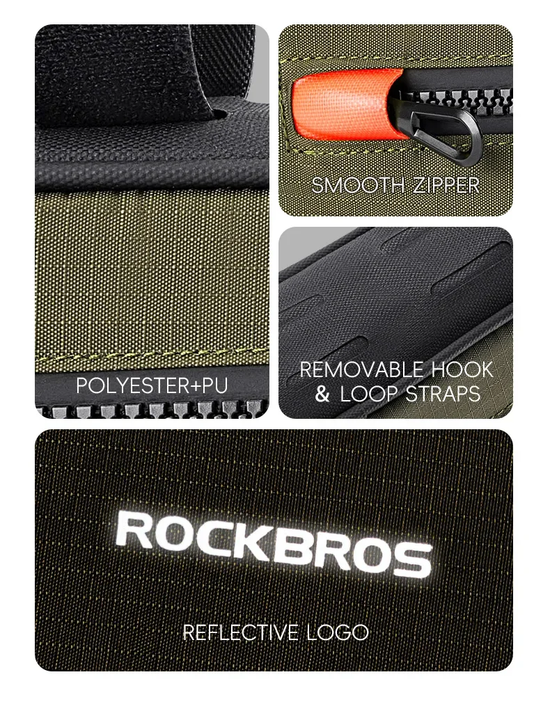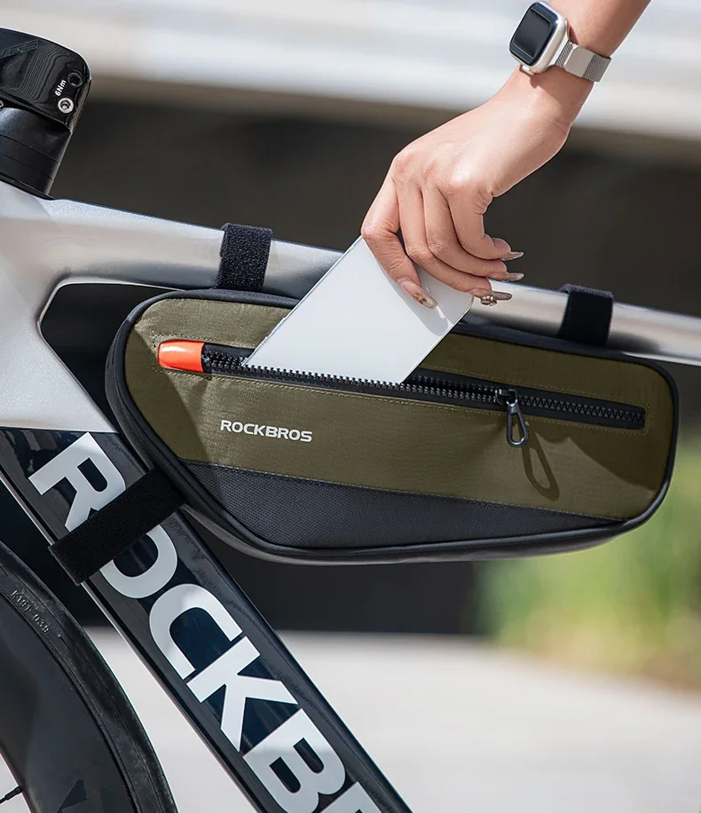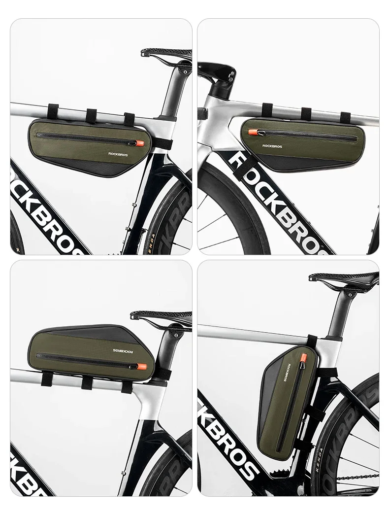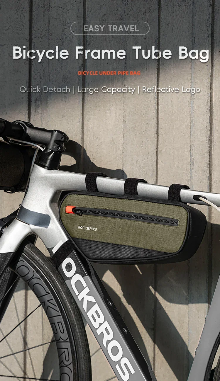 ROCKBROS Bicycle Bag Bike Frame Tube Bag Reflective 1.7L Bike Top Bottom Tube Bag Frame Bag MTB Road Cycling Pannier Portable