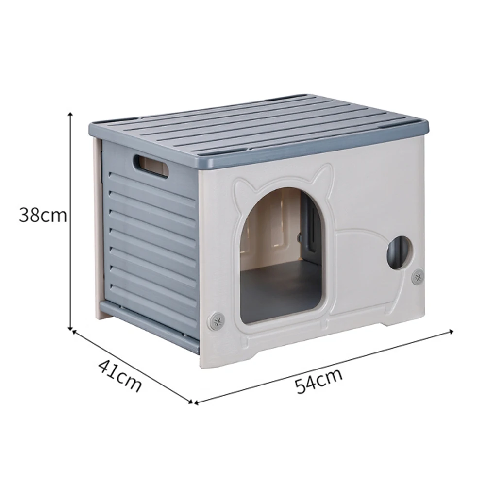 Features: 1. Warm and Secure Shelter: Our cat houses & condos provide a cozy resting place for your cats. The outdoor cat house features an escape door, making it ideal as a feeding station for stray cats, protecting them while they eat. 2. Ventilated and Spacious: Equipped with an escape door and PVC curtains, the stray cats houses offer ample ventilation and space for your cat to lie down and rest. The upper platform serves as a versatile napping pad, allowing your cat to look outside and relax. 3. Plastic Material: Made from plastic, this cat dog nest is waterproof and weather-resistant, making it for both indoor and outdoor use. It provides a reliable shelter for outdoor cats in various weather conditions. 4. Easy Assembly and Maintenance: The shelter stray is easy to assemble, store, and travel with. It is lightweight and portable. Simply wipe the exterior with a damp cloth to keep it clean, and remove the lid for easy access when cleaning inside. 5. Stackable Design: You can securely stack two or more cat houses without wobbling, making them for multi-cat households. This feature ensures stability and maximizes space, providing a comfortable environment for all your cats.